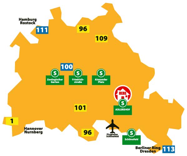 - Stadtautobahn bis Ausfahrt Berlin Adlershof.